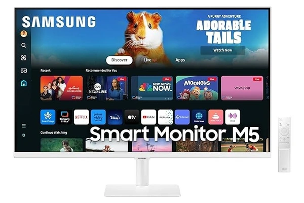 SKU-0561/ SIZE- 32" -Samsung 32" (80cm) M5 Smart Monitor with Smart TV Experience|FHD 1920 x 1080|Bezeless|OTT Apps|IoT Hub|Office 365|Workout Tracker|Speakers|Remote|Wi-Fi|Bluetooth|LS32DM501EWXXL|White