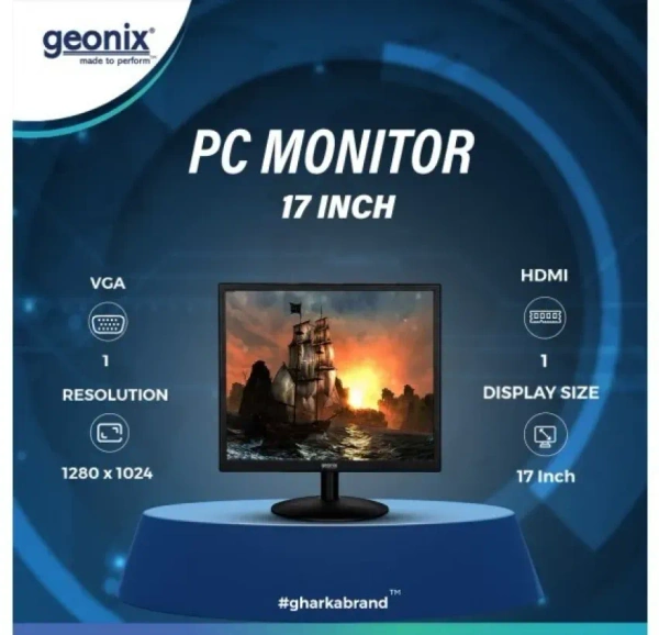 SKU-0152/ SIZE- 17"- GEONIX PC Monitor (43.18 cm/17 Inch), VGA & HDMI, LED Display, 1280X1024 Resolution, 16.7M Color, 16W(Max) Power Consumption
