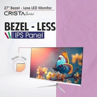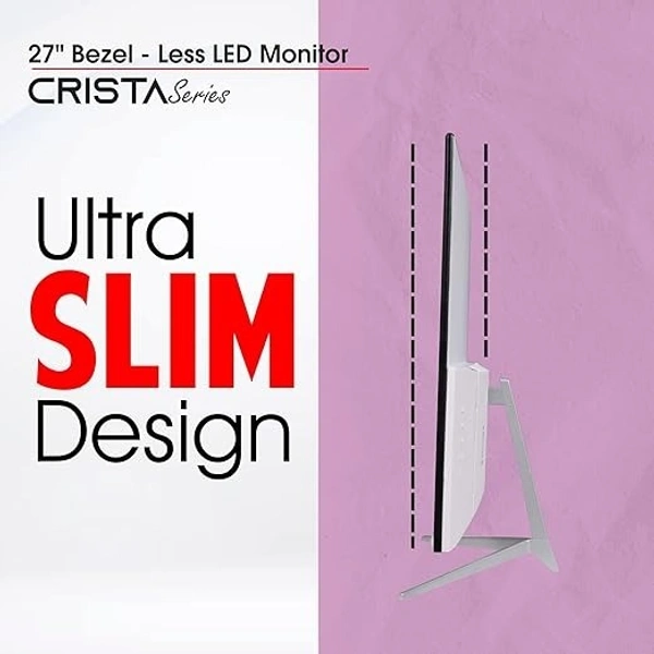 - The Crista Series Bazel less monitor, which has a screen size of 27 inches (68.58cm) and is appropriate for desktops and laptops, can help you be more productive