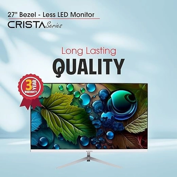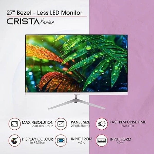 SKU-0205/ SIZE- 27"- Zebion FHD Led Frameless Monitor Crista Series, IPS Panel, in-Built Speaker, 1920x1080 Pixel with Max Resolution, HDMI, VGA, Wall Mountable, Fast Response Time, 3 Year Warranty (27-inch, 75Hz)