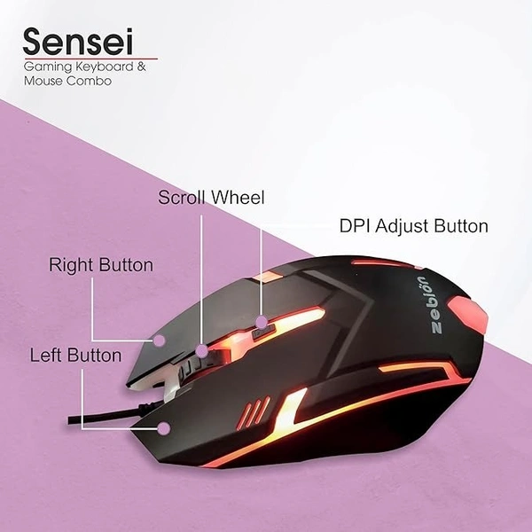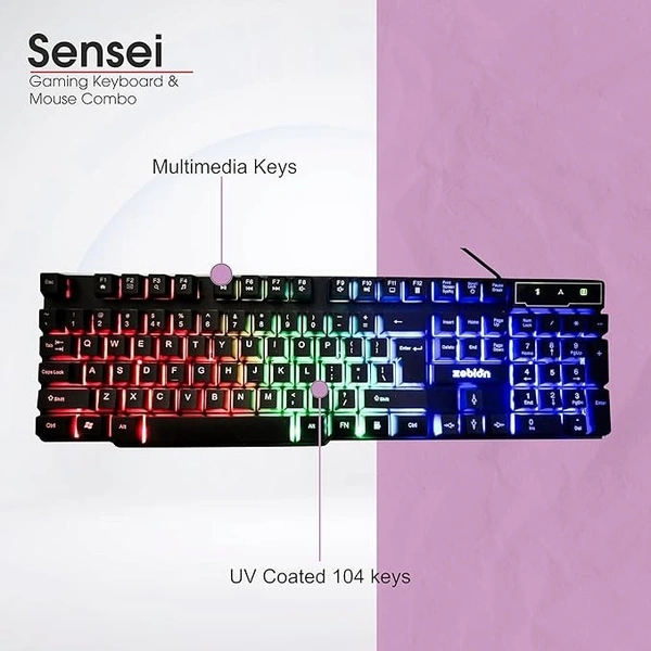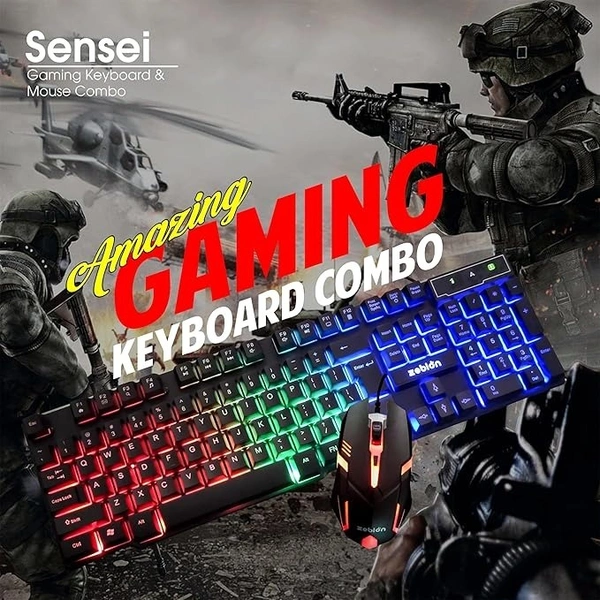 SKU-0209/ COMBO- WIRED- GAMING- ZEBION Sensei Wired Gaming Keyboard Mouse Combo with RGB Lights, The Backlit Keys are Bright and Sharp, Adjustable DPI with Color Changing RGB Light, Durable Body, 1 Year Warranty