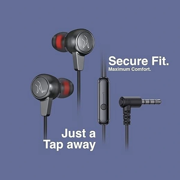 FINGERS SoundElite Wired in-Ear Earphones with Built-in Mic, 10 mm Neodymium Driver, 3.5 mm L-pin Connector (Rich Grey)