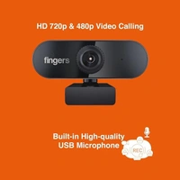 SKU-0328/ CAMERA- USB- FINGERS 720 Hi-Res Webcam with 720p Wide Angle Lens and Built-in Mic for PC Desktops and Laptops - HD Video Calling & Recording with up to 1280 x 720 Pixels