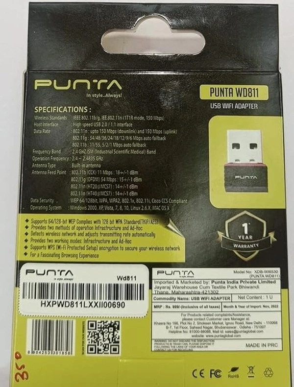 USB WIFI- Punta 150M WiFi USB Dongle/Adapter (1 Year Warranty)